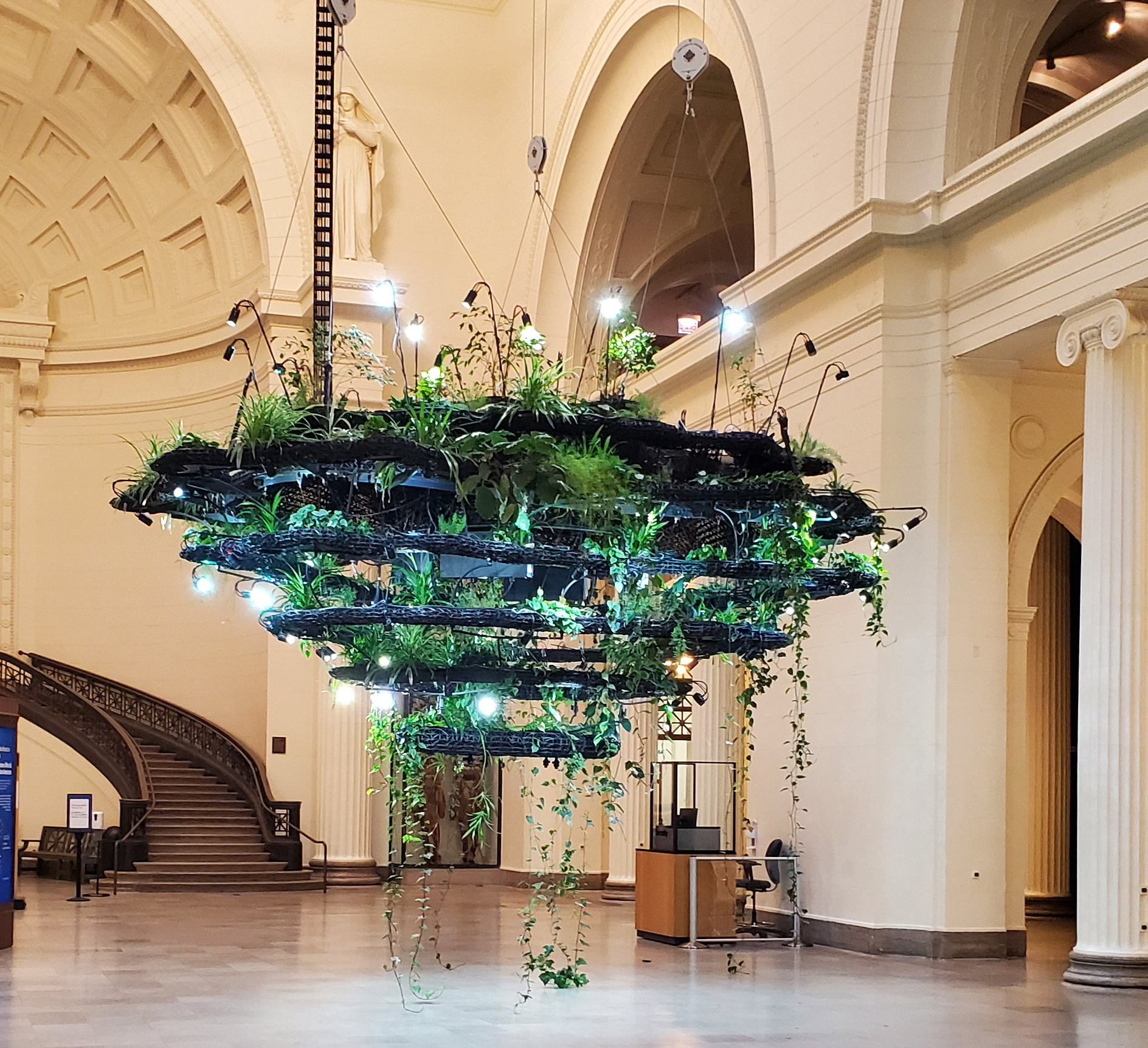 In the Field Museum’s Stanley Field Hall, colossal rafts of greenery hang from the ceiling, illuminating over 1,000 plants with vibrant colors. The Hanging Gardens are completely unique in their structure, 3D printed to appear like clouds. But they didn’t start out that way: their original design included a lighting system that used LEDs to supplement daylight, but unfortunately, it was discovered that this system wasn’t keeping the plants alive.