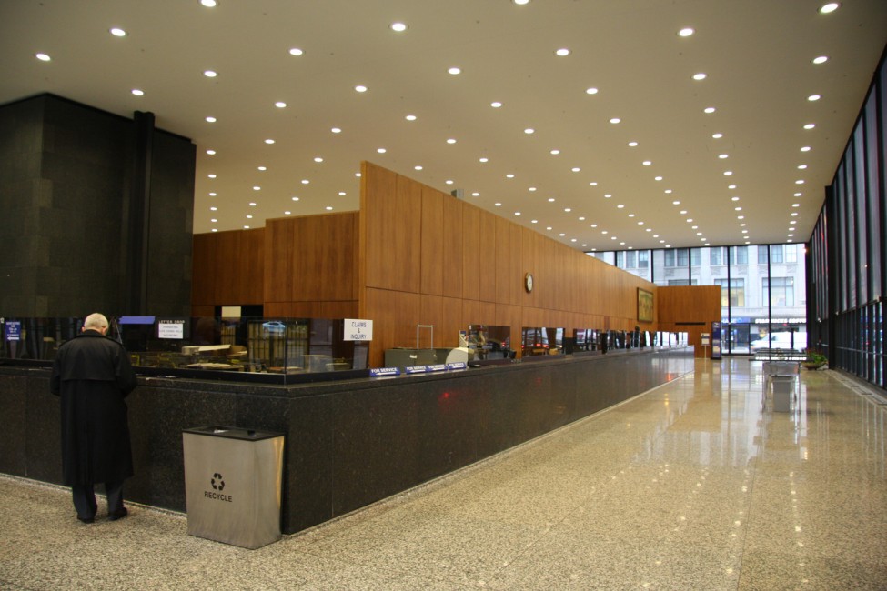 Built in 1974, Mies van der Rohe’s iconic Chicago Central Post Office is part of the three-building GSA complex located in the Loop. It is distinguished by its downlight grid that follows the building’s own grid-like architecture. The GSA renovated the building to increase energy efficiency and highlight the original architecture, which included a re-evaluation of the lighting systems. Morlights worked with the GSA to restore the lighting to Mies’ original design, while also reducing power use and adjusting lighting levels throughout the day. We discovered so many efficiencies along the way that the GSA was able to complete the entire project, rather than just the half they had been expecting. The post office is the only building in federal plaza that has the original Mies detail at the downlights.