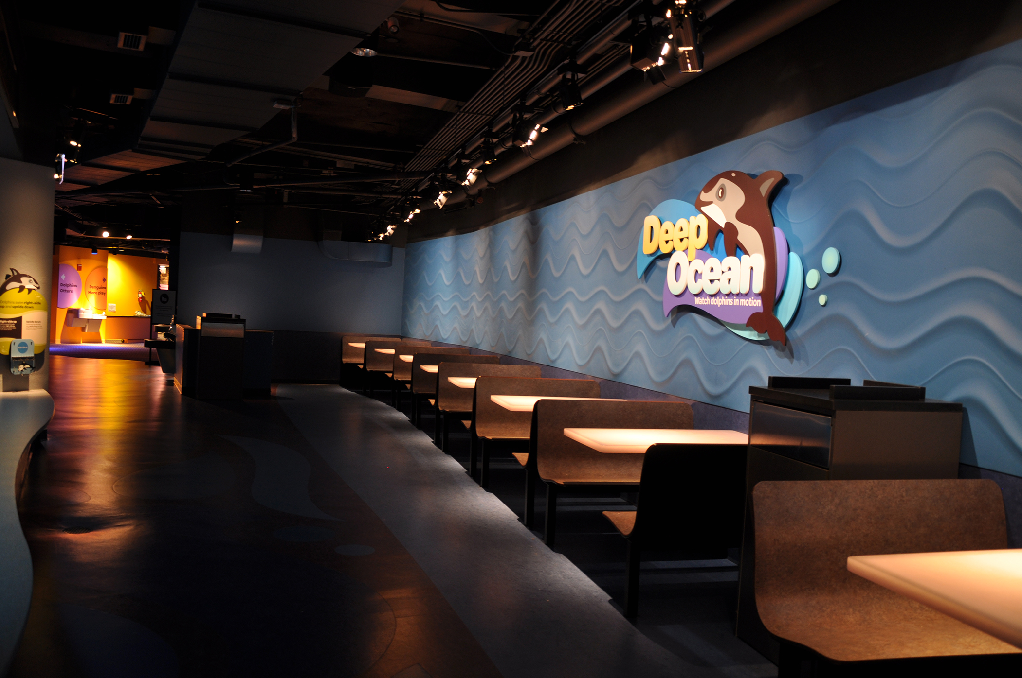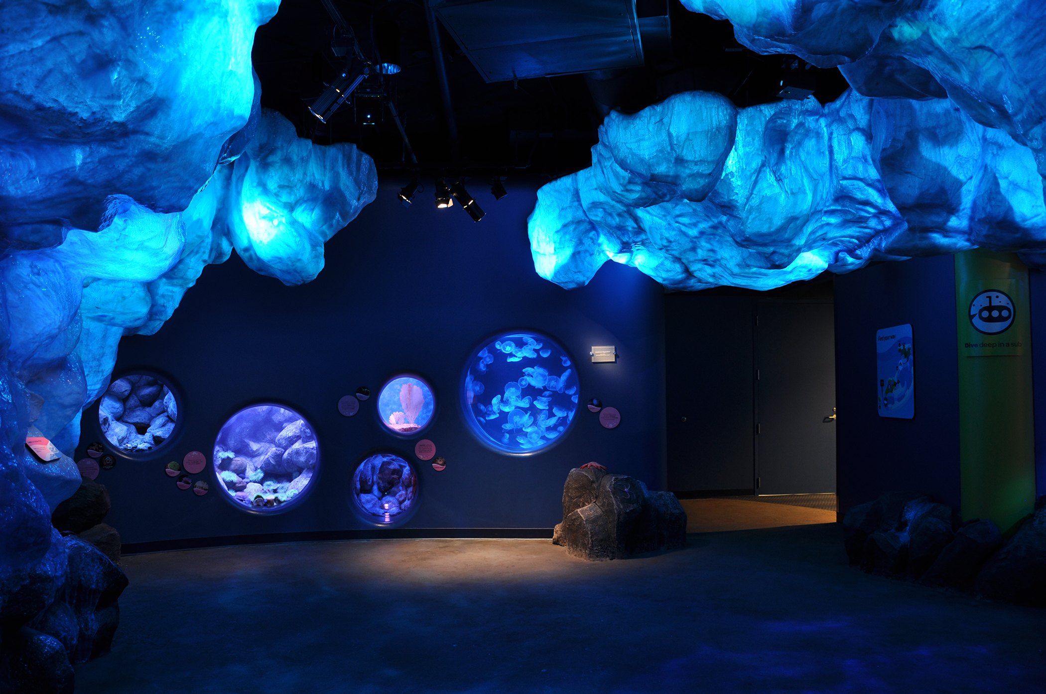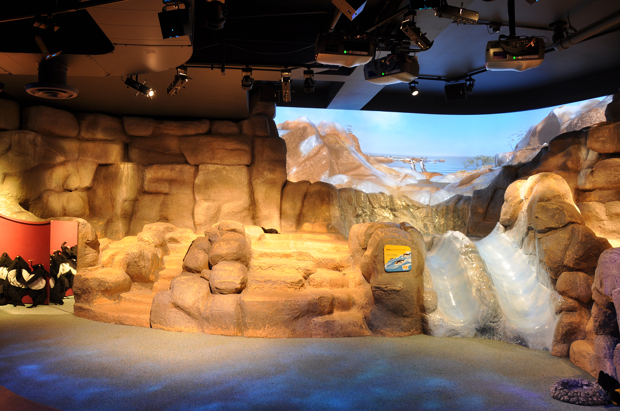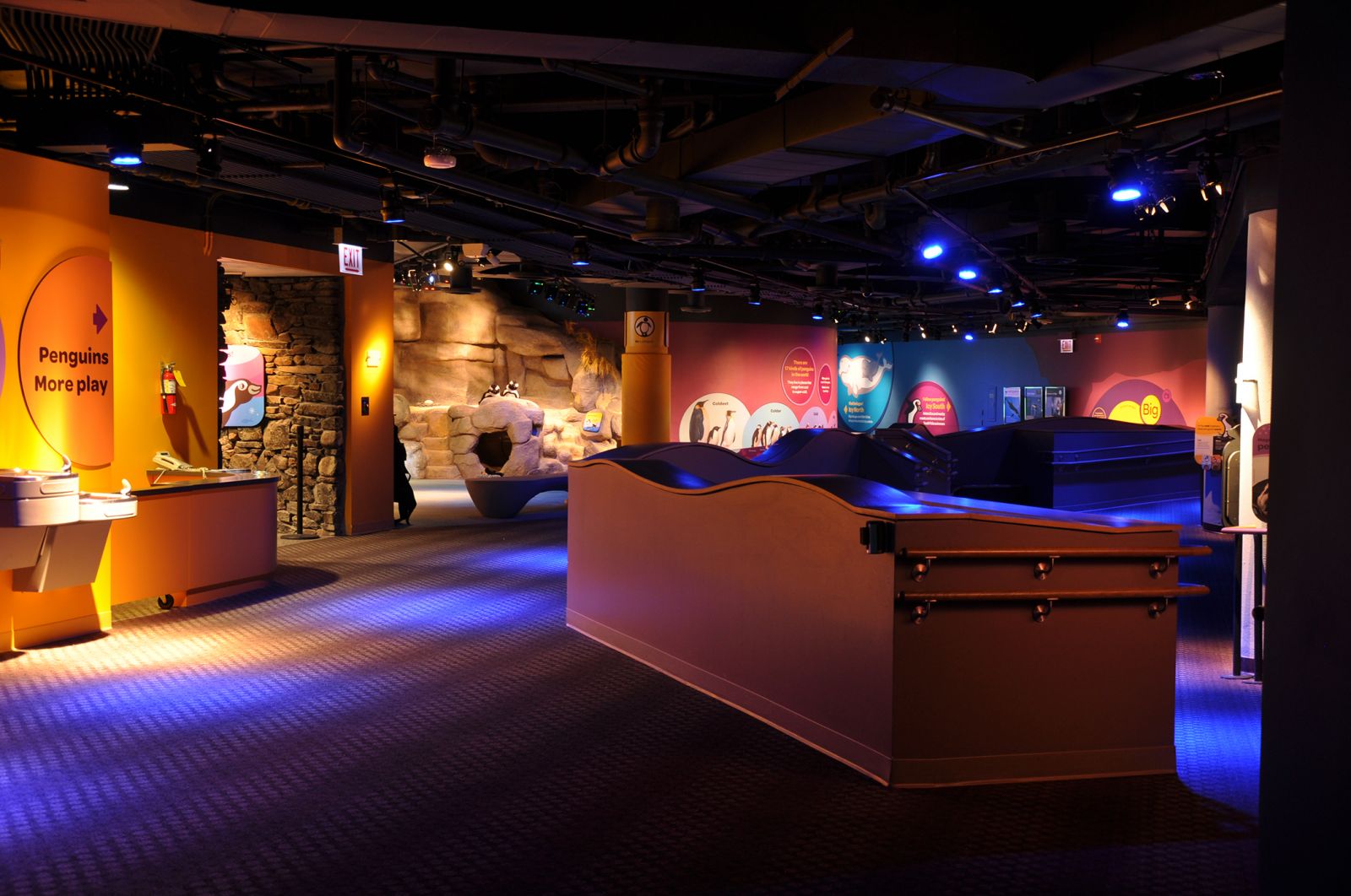 By introducing a great variety of lighting into the environment, we perfected the realism of an aquatic habitat. Not only did this make visitors feel like they were actually underwater, it also improved the livelihood of the animals in the aquarium — in one particular case, we coordinated with the animal trainers to complement color-changing LED lights in the penguin habitat that encourage reproduction. We also eliminated glare throughout the exhibit, and evenly lit murals for a more consistent visitor experience. This work was greatly appreciated by the museum staff, and received recognition for its innovation and sensitivity with a 2010 IES Illumination Award.